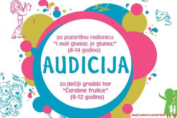 U subotu, 10. septembra, u prostorijama DKCNS-a biće održane tri audicije, različitih umetničkih orijentacija. Gradski hor "Čarobne frulice" i pozorišni studio primaju nove članove, a omladinci će imati prilike da se uključe u pozorišni projekat "Gluma jeeee...".