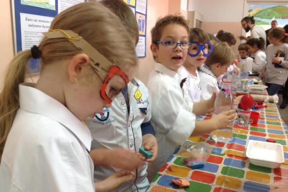 Prvi put na "Danima nauke" učestvovali su i najmlađi Drinkini đaci, učenici I1 i I4 odeljenja, i radoznalim posetiocima prikazali eksperimente koje su sa svojim učiteljicama Merimom, Ivanom, Dijanom i Marijom, pripremili u okviru izbornog predmeta "Ruke u testu".