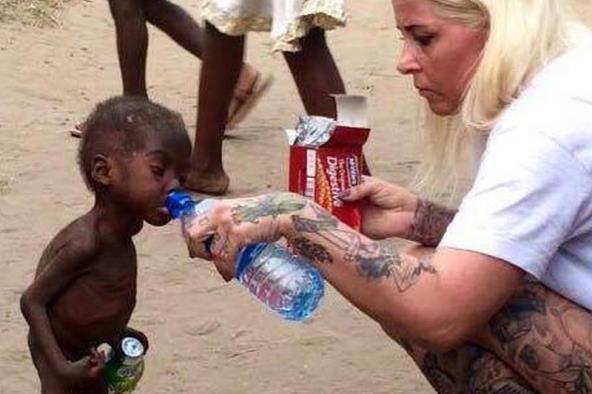 Fotografija na kojoj ona malenom dečaku, kog su roditelji ostavili jer su mislili da je veštac, daje vodu obišla je čitav svet.
