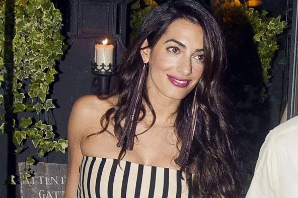 Amal je i za ovu priliku izabrala beli kombinezon na crno-bele pruge koje izdužuju figuru, a stajling je upotpunila visokim potpeticama i upečatljivim, visećim minđušama.