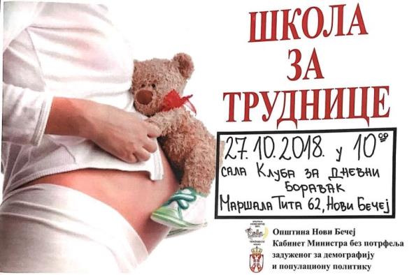 Prvi uvodni čas počinje 27.10.2018. u 10 časova u sali Kluba za dnevni boravak na adresi Maršala Tita 62 Novi Bečej. Obuka traje 20 časova, 2 puta nedeljno (subotom i nedeljom) u trajanju od 90 minuta i pruža budućim trudnicama odgovore na pitanja vezana za period trudnoće, porođaja, dojenja i nege novorođenčeta.