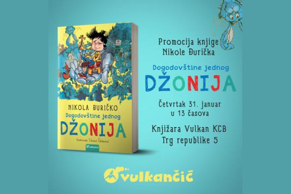 Promocija knjige za decu Nikole Đurička pod nazivom "Dogodovštine jednog Džonija" održaće se u četvrtak 31. januara u knjižari Vulkan KCB (Trg Republike 5) sa početkom u 13 časova. Specijalni gosti promocije biće đaci OŠ "Starina Novak", a o knjizi će, osim autora, govoriti i Branka Josipović, urednica Vulkan izdavaštva.