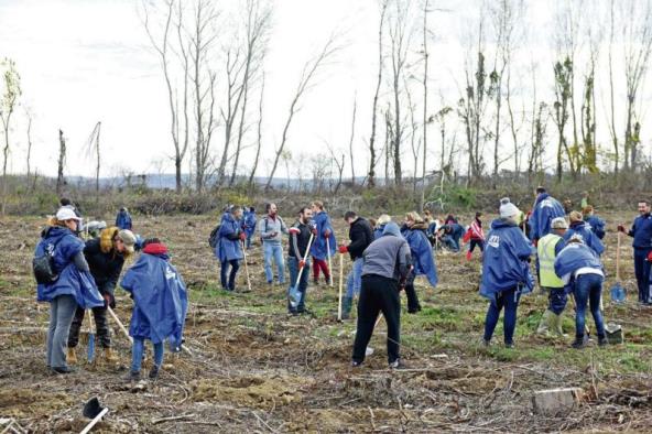 Jutro 17. novembra prošle godine osvanulo je sveže i suvo. U momentima dok smo lagano zauzimali startne pozicije opremljeni kabanicama, rukavicama, gumenim čizmama, ašovima i motikama, sunce je počelo da se promalja, obećavajući da kiše neće biti. Dobar znak i akcija je mogla da startuje. Zaposleni u JP „Srbijašume“ daju precizne instrukcije okupljenima kako se sadi. Svi ih pažljivo slušaju i prate. Ubrzo su radne jedinice od po troje aktivista vredno i strpljivo sadile jednu po jednu sadnicu. I tako do tačno 51.256 sadnica hrasta, poljskog jasena, smrče, crnog bora! I to ne samo u Boljevcima već na još 33 lokacije.