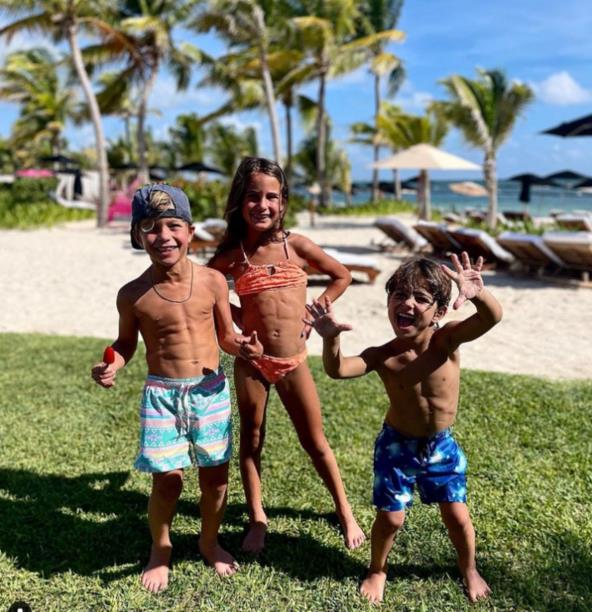 Na slici na kojoj poziraju ćerka Vivijen (8) koja aktivno trenira gimnastiku, sin Erik (7) koji se bavi fudbalom, i sin Forest (4) koji obožava ples, a ono što svi prvo primete jesu pločice na njihovim stomacima.