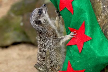 U zoološkom vrtu u Bedfordširu u Engleskoj mali merkati ukrasili su svoj dom u iščekivanju Deda Mraza.
