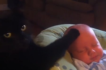 Jedna porodica je na svom kanalu na sajtu Youtube.com podelila kućni snimak na kojem crni mačak pokušava da smiri i uspava njihovog uplakanog dečačića Konara.