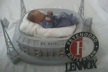 On je na društvenu mrežu "Tviter" postavio ljupku fotografiju svoje ušuškane bebe u malenom krevecu koji je ukrašen reflektorima i grbom fudbalskog kluba "Fejenord" iz Roterdama.