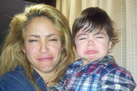 Simpatična fotografija prikazuje Šakiru kako drži malog uplakanog Milana i i apsolutno se solidariše sa njim namestivši identičan izraz lica.