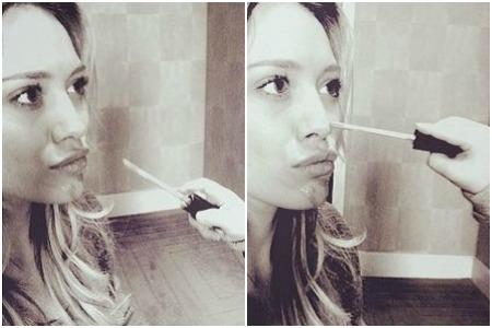 Ova ponosna mama bila je dirnuta kada je njen najdraži dvogodišnjak poželeo da je našminka i pomogne joj da se ulepša, te ga je pustila da koristi njeno lice kao svoje slikarsko platno i u zabavlja se šminkajući mamu. Iako je više sjaja za usne završilo na Hilarinim obrazima i nosu nego na usnama, ona je uživala u brizi svog sinčića, pa je ovo "ulepšavanje" ovekovečila i postavila fotografije na društvenu mrežu Instagram.