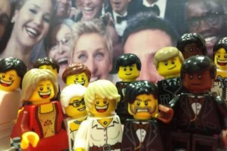Na "Lego selfiju" su verzije Elen Dedženeres, Meril Strip, Kevina Spejsija, Džulije Roberts, Breda Pita, Dženifer Lorens, Čeninga Tejtuma, Lupite Nijongo i njenog brata i Bredlija Kupera, koji je i uslikao sebe i svoje poznate kolege.