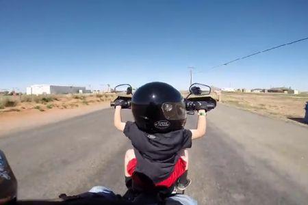 Ovaj neoprezni tata je, kada je pošao u vožnju, stavio na motor marke "Harli Dejvidson" i svog šestogodišnjeg sinčića i odlučio da se s njim provoza pustinjom. Međutim, u toku vožnje se, čini se, umorio, pa je opušteno sklonio ruke s upravljača. I to pri punoj brzini!