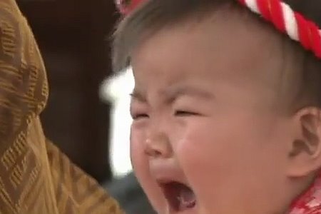 Ipak, u Japanu postoji verovanje da bebin plač pomaže u borbi protiv zlih duhova i da ukazuje na dobro zdravlje deteta, zbog čega je plakanje poželjno. U skladu s tim verovanjem, u Japanu se već četiri stotine godine održava svojevrsni festival, u okviru kojeg sumo rvači ispuštaju glasne zvukove i prave zastrašujuće izraze lica ne bi li rasplakali bebe. Kada im to pođe za rukom, takmičenje počinje, a najglasnija beba je pobednik nadmetanja u plakanju!