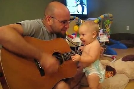 Naime, doj je otac svirao gitaru i pevao hit Bon Džovija, njegov osmosmesečni veseli mališan skakutao i je i razdragano „pevušio“.