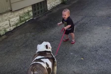 Jedanaestomesečni dečak, kao i svako dete uživa u igri sa svojim psom, međutim, otkako je naučio da hoda, mališan je poželeo da svog drugara i prošeta. Međutim, postoji jedan problem - kuca je teška 40 kilograma i nije baš oduševljena idejom o šetnji, tačnije ne želi ni da se pomeri.