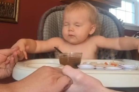 U videu se može videti kako devojčica sedi u hranilici držeći se za ruke s roditeljima. Žmureći sve vreme, preslatka devojčica je na kraju čak izgovorila i "Amin".