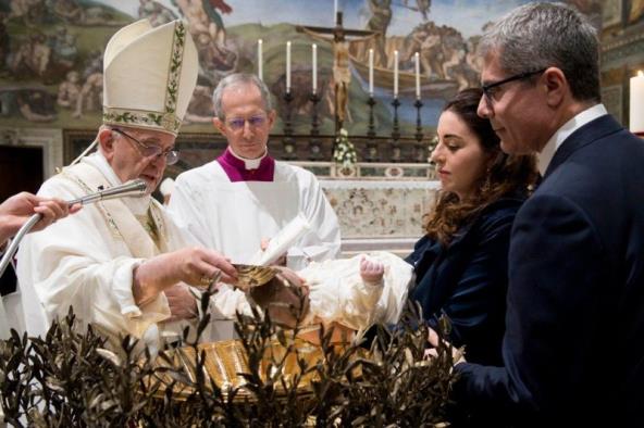Ceremonija je trajala više od dva sata, a papa je krstio 18 devojčica i 16 dečaka, uključujući dva para blizanaca.