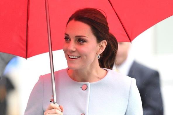 Kejt je za ovu priliku obukla bebi plavi kaput i plavu haljinu midi dužine sa cvetnim dezenom koju je nosila već nekoliko puta, kako u trećoj, tako i u ranijim trudnoćama.