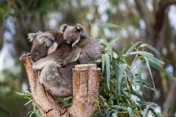 "Hang in there mum, I'm here for support!" - this touching moment was captured as Phantom the koala joey cuddled his mum...