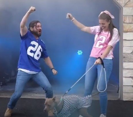 Na snimku koji je oduševio javnost nalaze se dve garaže. Iz jedne, sa plavim osvetljenjem, izlazi tata, dok iz druge, sa roze osvetljenjem, izlazi mama sa psom. Ona tati dodaje lopticu, koju tata baca na pod iiiii....