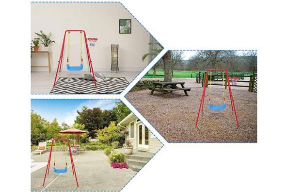 2-u-1 ljuljaška i koš ima jedinstven dizajn koji omogućava i ljuljanje i igranje košarke. Ovaj dizajn donosi i dodatnu praktičnost i uštedu prostora. Naime, ljuljaška na sebi ima obruč i onda se jedno dete može ljuljati, dok drugo igra košarku.