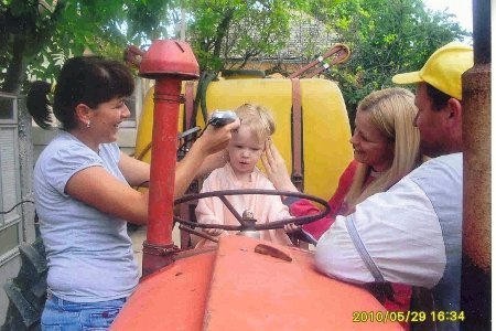 Iz bezbednosnih razloga, uz Luku su bili tata Nikica i tetka Biljana, dok je glavni majstor za prvu frizuru bila njegova buduća ujna Nada, frizer po zanimanju. Ja sam budno motrila na Luku i veštinu frizerkinih ruku, i istovremeno fotografisala događaj. Uživajući u "vožnji" traktora, Luka je sve vreme bio miran. Nije čak ni primetio šta se događa sa njegovom kosicom.