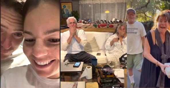 Oni su prvo posetili njene roditelji, a trenutak kada su saznali da će postati baba i deda je nešto zbog čega ćete teško zadržati suze. Nakon toga posetili su njegove roditelje, a njima su na vrlo poseban način saopštili lepe vesti.